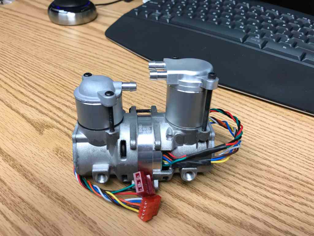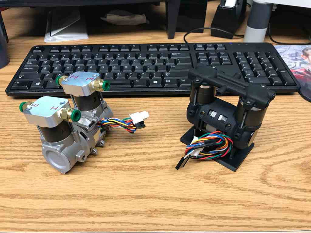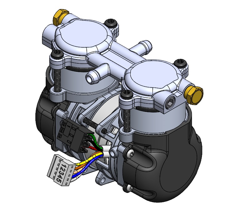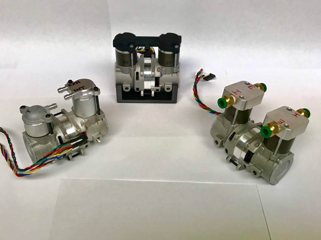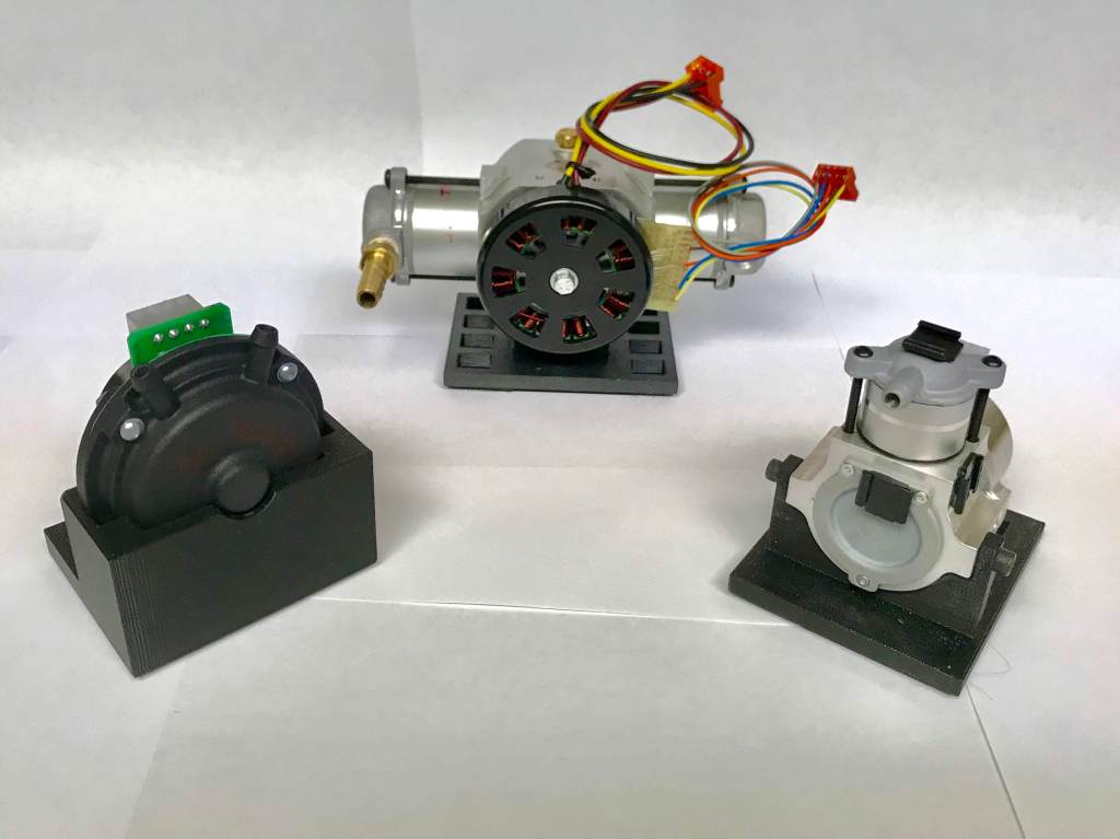 Various examples of compact piston compressors and vacuum pumps. All fit in the palm of my hand and are designed to weigh between 250-500g. They utilize BLDC motors and are made from die cast magnesium/aluminum and injection molded plastics. Shown as 3D model iterations and physical prototypes.